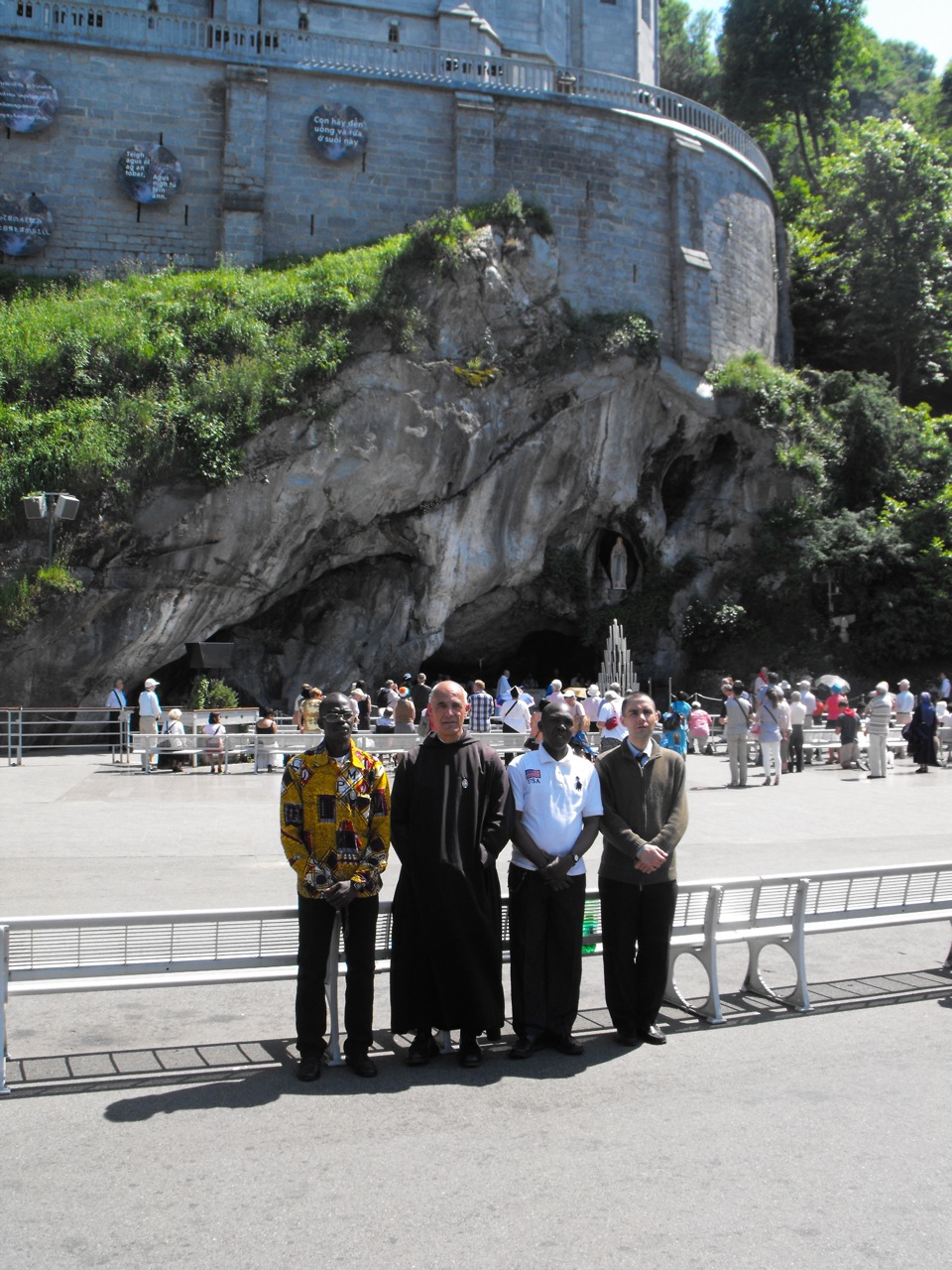 Lourdes était sur notre route : quelle émotion pour nos 3 postulants de découvrir pour la première fois la grotte sacrée où l’Immaculée Conception apparut à sainte Bernadette et où de partout dans le monde on vient en humble pèlerin, chargé de ses misères, pour y retrouver le salut de l’âme et quelques fois la santé du corps. Puisque nous avons la grâce d’être appelés les bénédictins de l’Immaculée, nous sommes venus nous aussi prier longuement à genoux aux pieds de Marie et lui renouveler notre totale consécration. Après avoir purifié notre âme en l’immergeant dans la prière du saint rosaire, nous avons purifié aussi nos corps en les plongeants dans les piscines où coule l’eau miraculeuse. Sainte Marie, Mère de Dieu, priez pour nous, pauvres pécheurs, maintenant et à l’heure de notre mort. Amen.